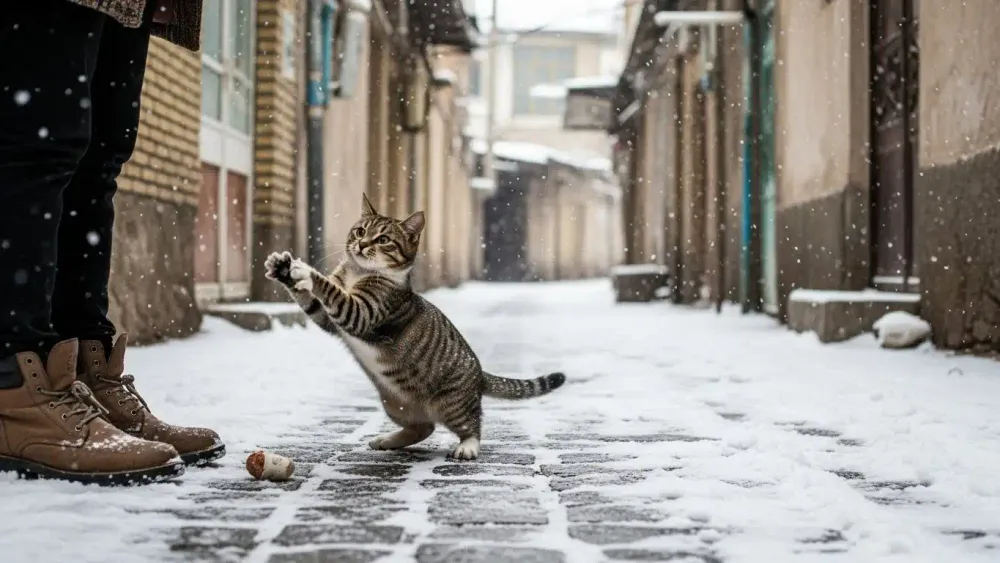 گربه و برف: گربه رو توی هوای برفی بیرون ببرم؟